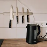 To enhance your comfort, the apartment features an equipped kitchen with an electric kettle, a fridge, and kitchenware provided.